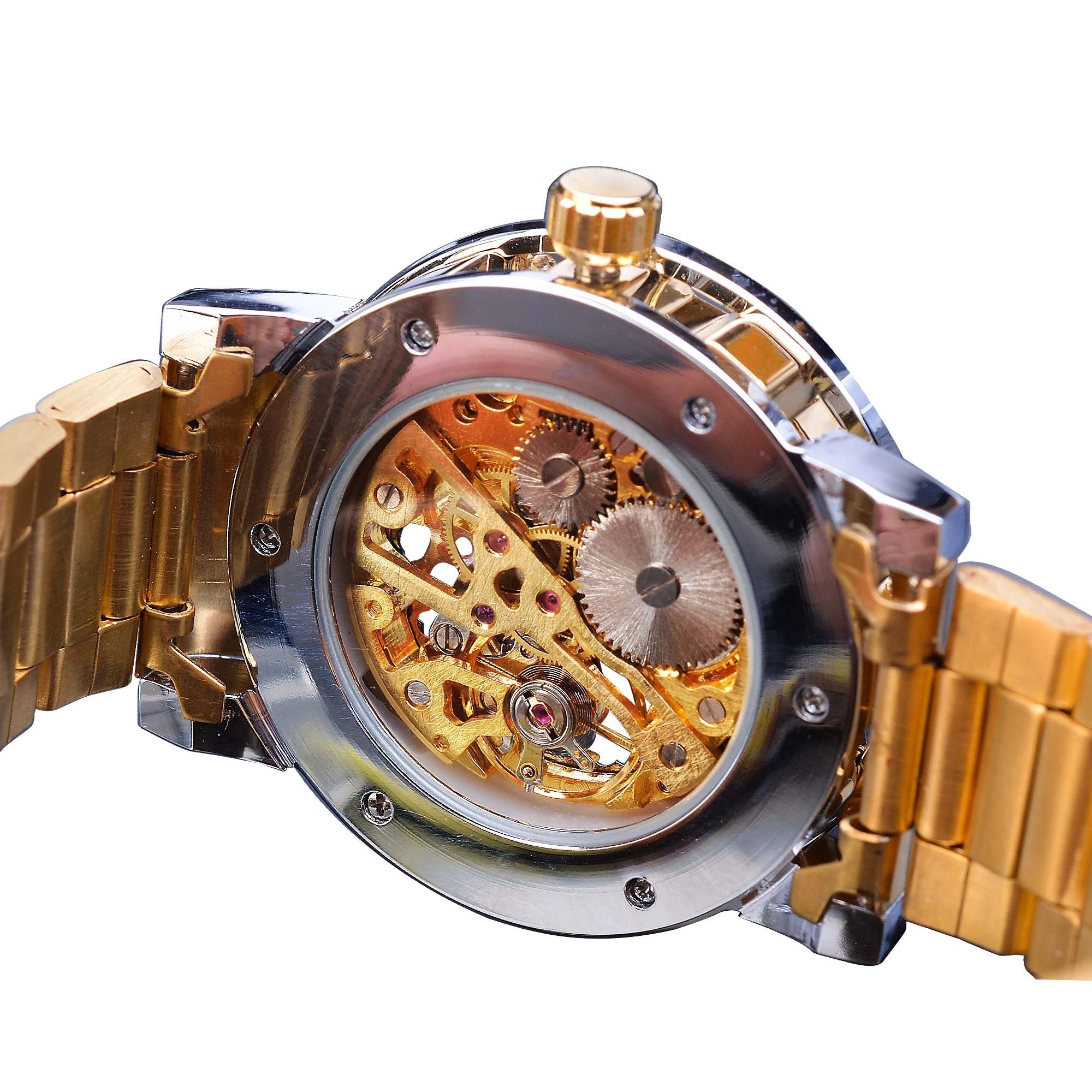 Golden Classic Rhinestone Roman Analog  Skeleton Automatic Mechanical Men's Watch
